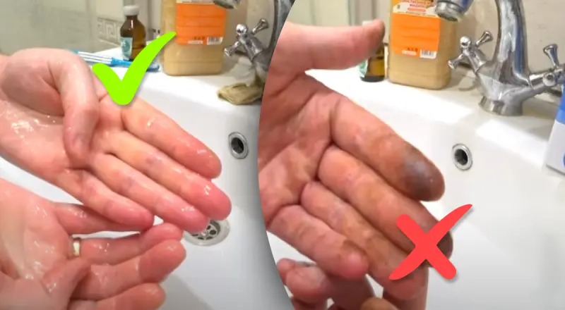 Растительное масло: Нанесите небольшое количество растительного масла (оливковое, подсолнечное и т.д.) на черные пятна и массируйте кожу. Затем вымойте руки с мылом и теплой водой. Масло поможет быстро снять черноту и смягчить кожу.