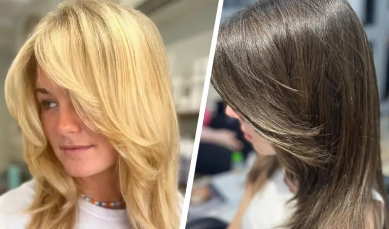 Модная женская стрижка 2022 Бабочка - это многослойные длинные волосы и короткие слои на макушке. Именно из-за коротких слоев, которые очень сильно напоминают крылья порхающей бабочки, и появилось очаровательное название стрижки.