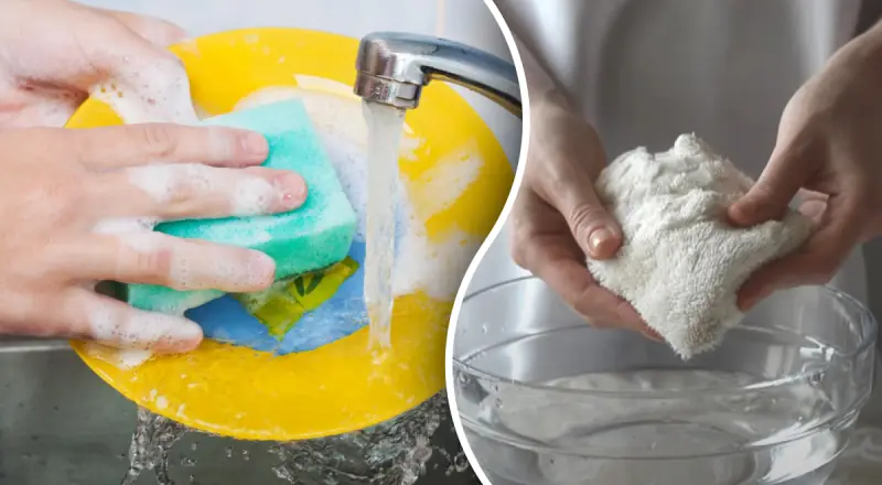Для мытья посуды можно использовать обычную тряпку из прочной ткани небольшого размера. После использования ее будет легче очистить, чем мочалку. Тряпку можно сполоснуть под проточной водой со средством для мытья посуды или хозяйственным мылом, и она снова станет чистой.
